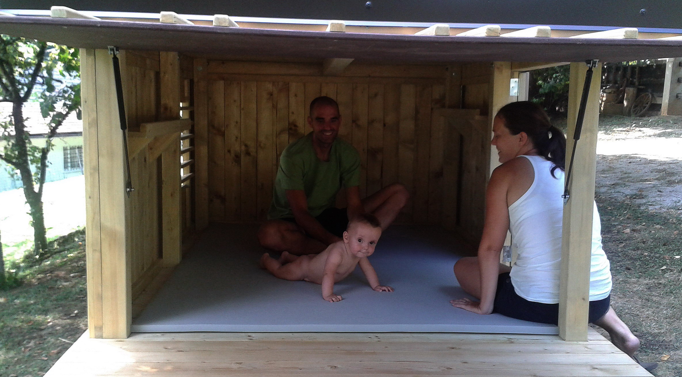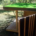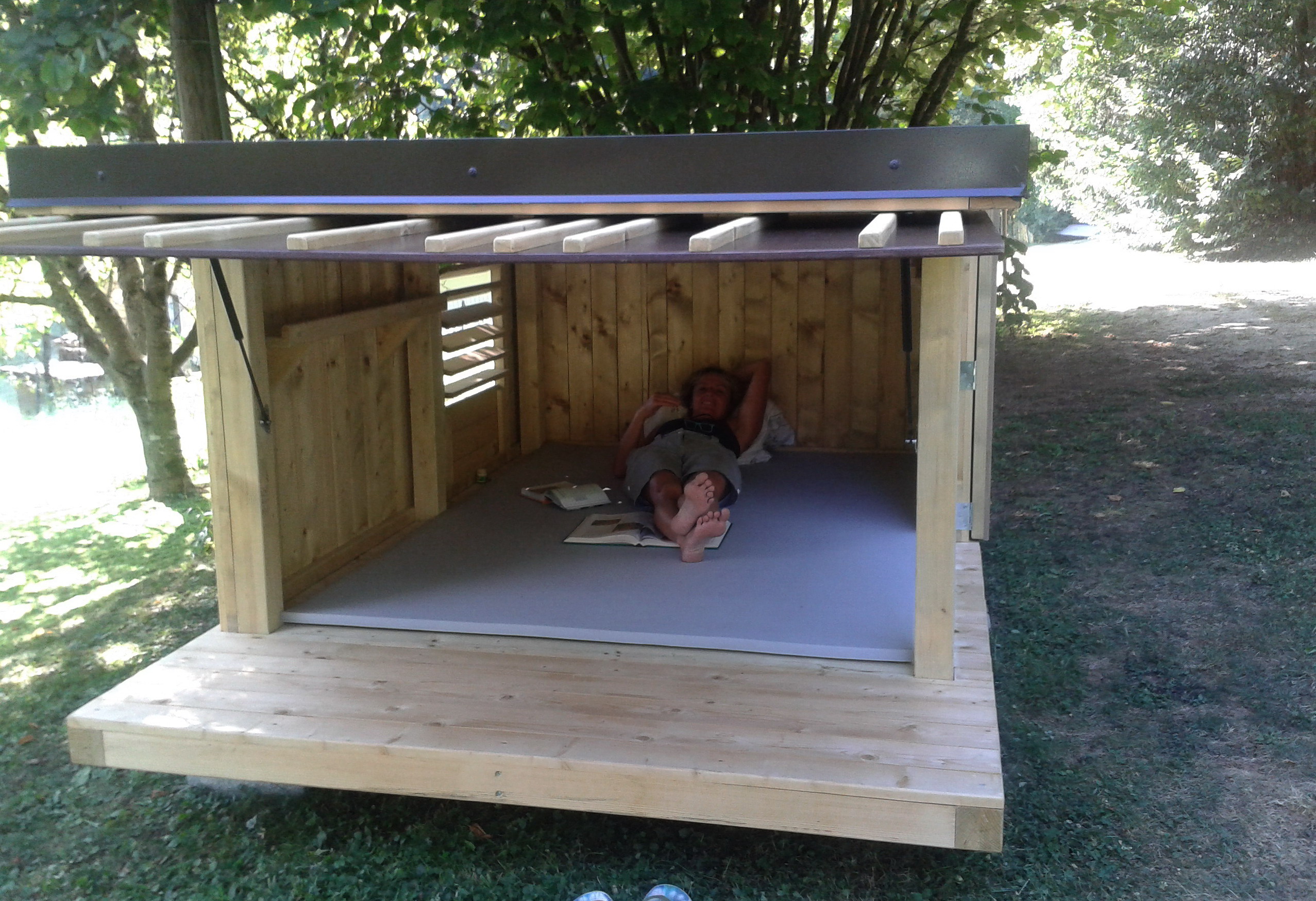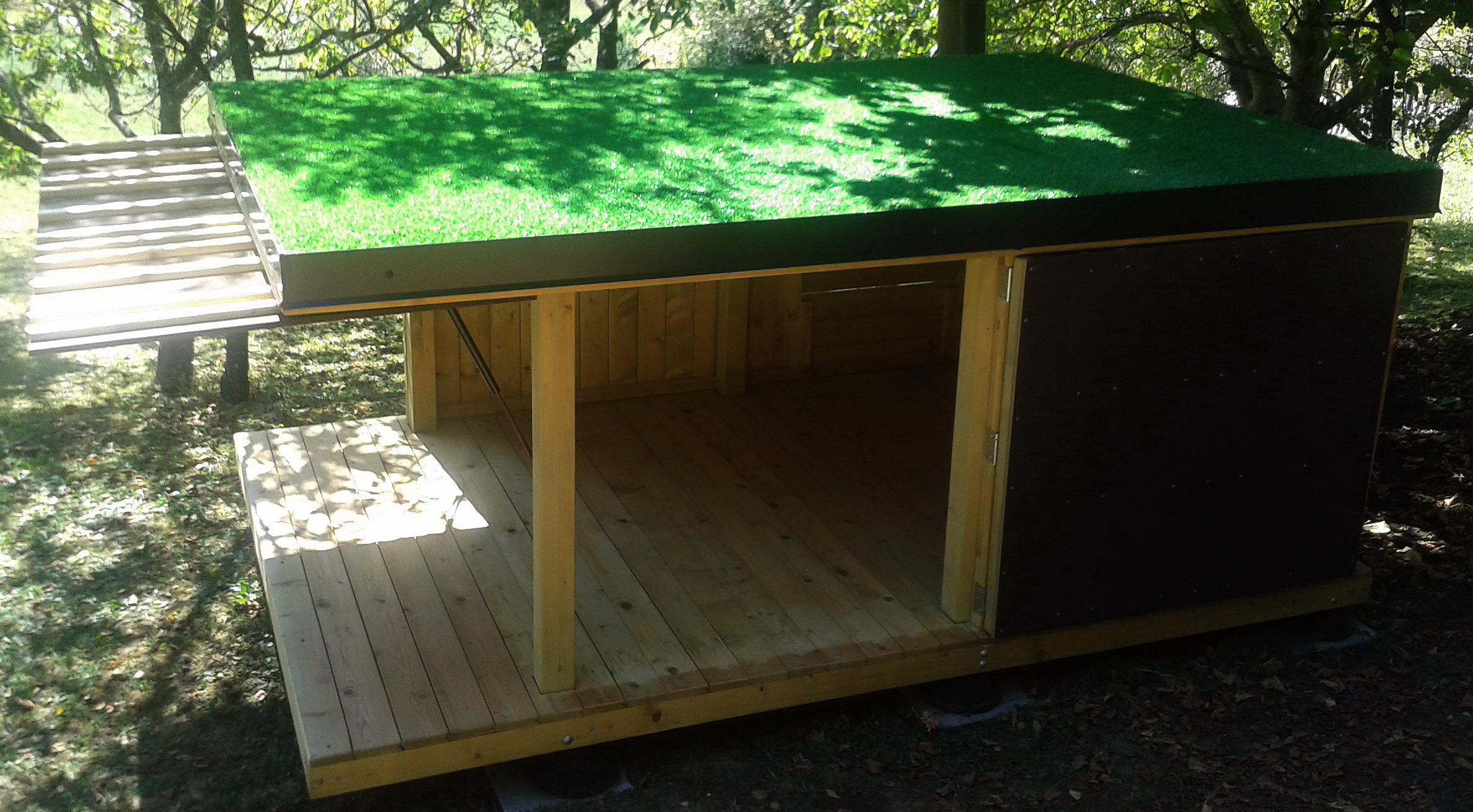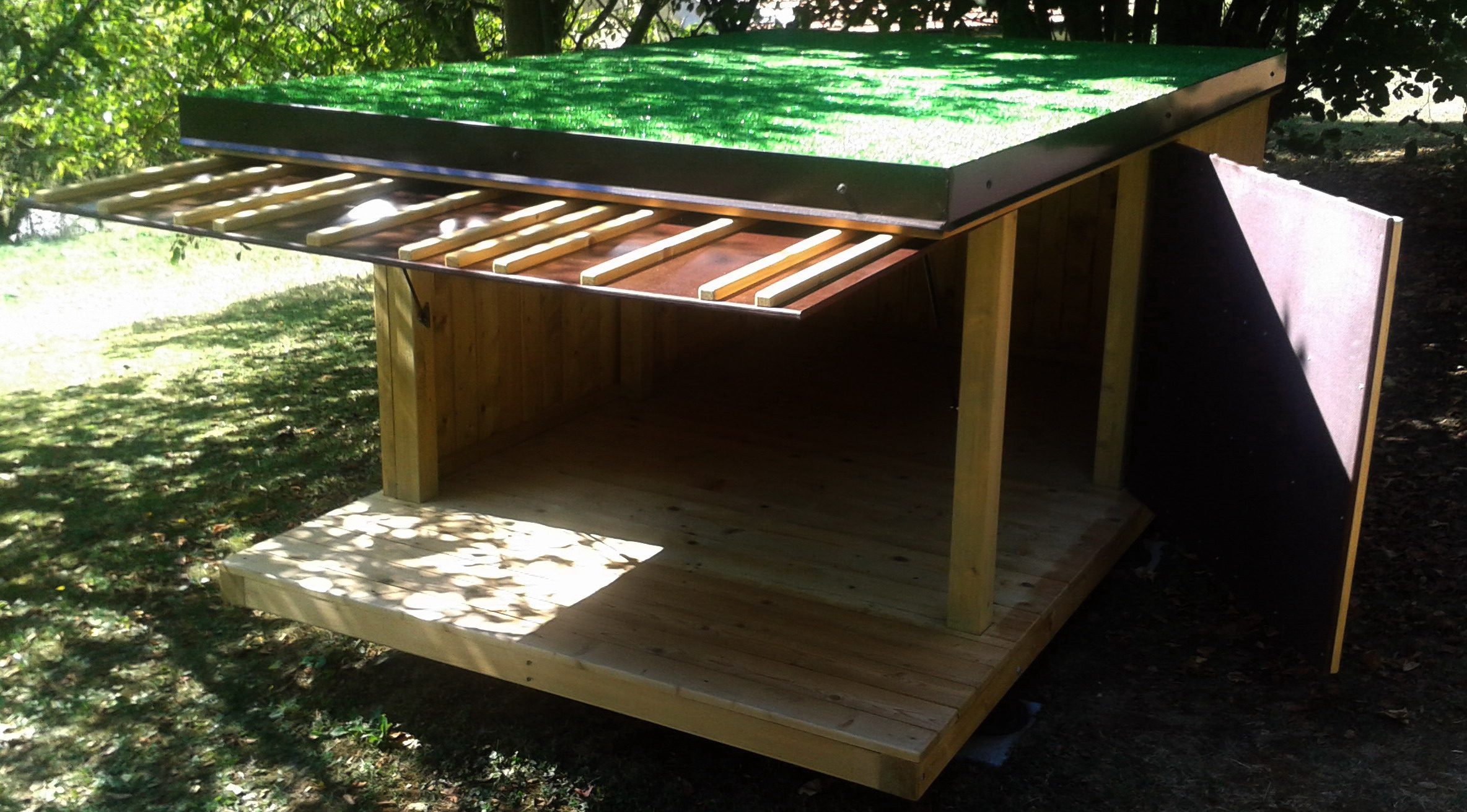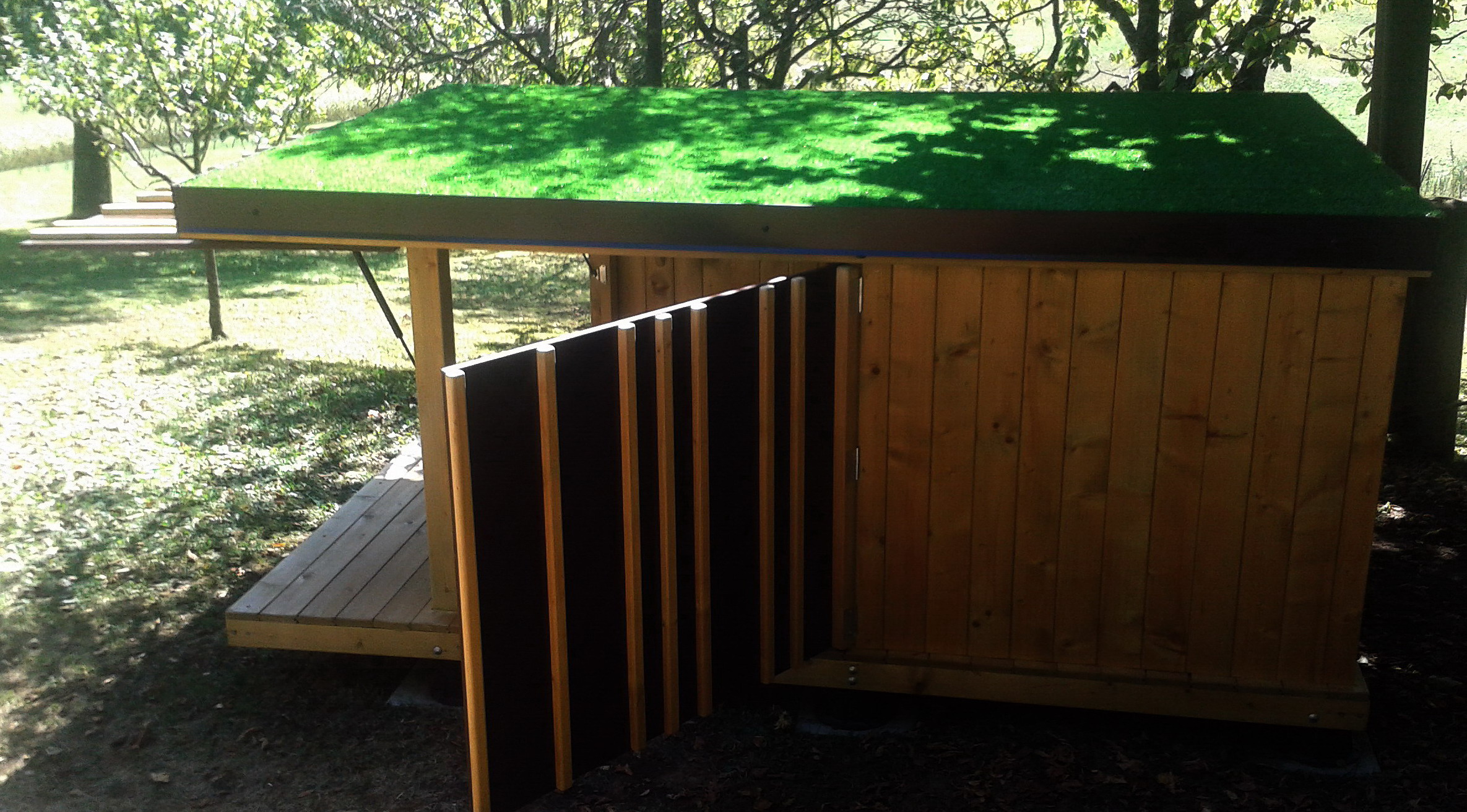 V ta namen smo v podjetju PILLAR d.o.o. zasnovali BIVAK, primeren za učinkovito povečanje dodatnih zmogljivosti v kampih, turističnih kmetijah, toplicah, gorskih in gozdnih kočah ter drugih turističnih zmogljivostih. Izdelan je izredno robustno, konstrukcija je iz masivnega in vzdolžno lepljenega lesa, tla, strop in stene so iz masivnega in površinsko obdelanega naravnega smrekovega lesa. Vse je zaščiteno s premazi za zaščito pred vremenskimi vplivi, delovanjem lesnih gliv in lesnimi insekti. Dvoje vrat, ki se lahko zaklepajo, je namenjenih vhodu in zračenju, prednja dvižna vrata se s plinskimi vzmetmi enostavno odpirajo nad majhno teraso, na kateri je možno sedeti tudi ob dežju. Na drugi strani je majhno polkno za dodatno zračenje. Vse odprtine so zaščitene z mrežo proti komarjem in insektom. Opremljen je z 12V solarnim modulom za notranjo osvetlitev in napajanje manjših elektronskih naprav. Streha ki je kovinska in kleparsko obdelana, je dodatno toplotno izolirana še z umetno travo.